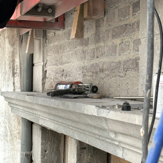 Maar achter deze pracht schuilde een uitdaging: veel van de ornamenten waren beschadigd en delen ontbraken van de gevellijsten. Gelukkig stond Conings Gevelwerken uit Maasmechelen paraat, gespecialiseerd in historische restauraties. Met de expertise van gespecialiseerde granitowerkers werden oude stukken weggeslepen en zorgvuldig hersteld met RVS draadstangen en een speciale tweecomponentenlijm.